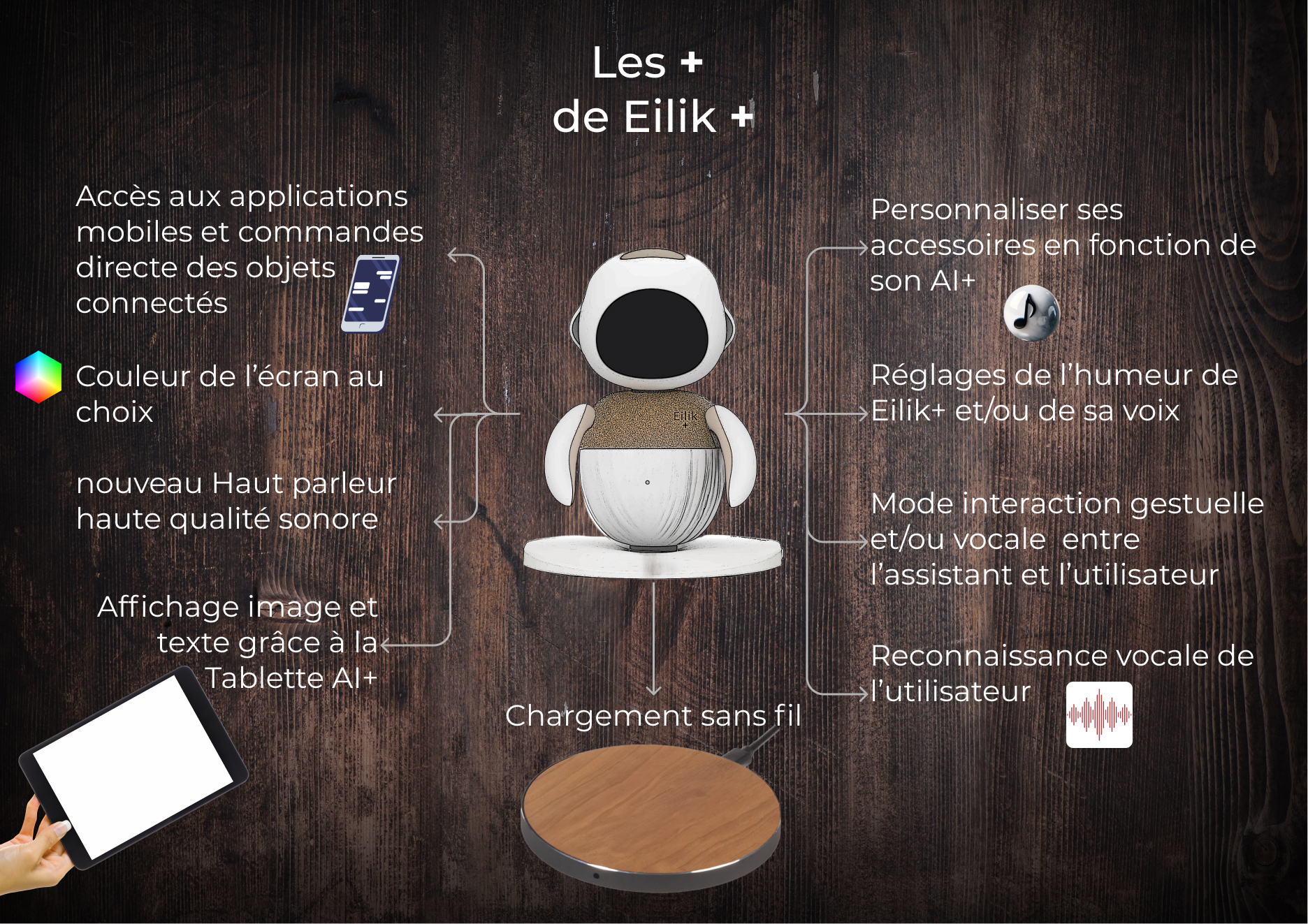 Eilik évolue en Eilik AI+, intégrant des fonctionnalités d'intelligence artificielle avancées pour une interaction plus intuitive et personnalisée.